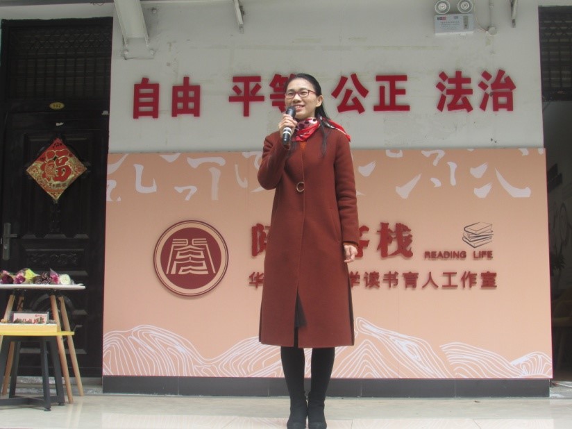 “掌柜”杨灵珍在发言中表示:“此次仪式是对过去发展的回首总结。”她感谢这期间学校、学院所有领导、老师的支持,感谢历届两百多位党员“小二”的付出。回望十年,迈向未来,希望这小小的客栈能够继续在桂子山发光发热,服务师生,吸引更多人与书为伴。