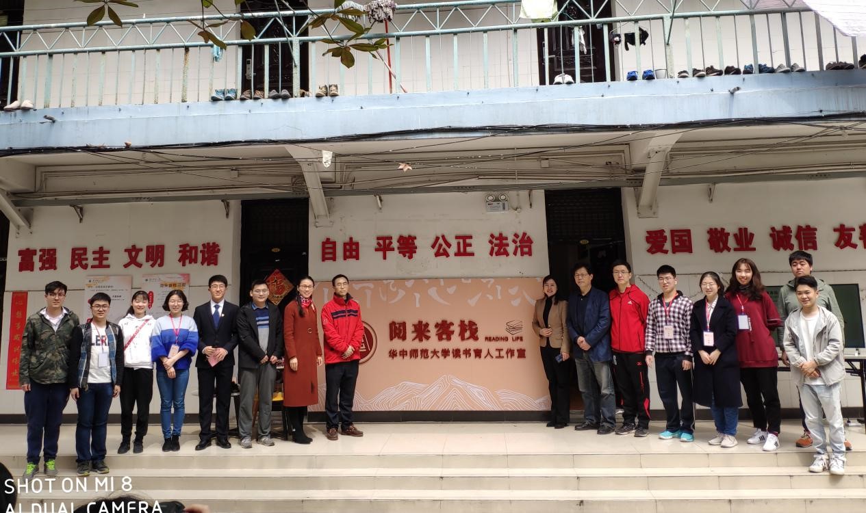 2019年3月17日,华中师范大学阅来客栈工作室于东区学生社区正式开张,学工部部长韩君华、副部长李刁,城市与环境科学学院党委书记梁志群、正处职组织员曹慧东,及城环学院辅导员兼学生党支部书记杨灵珍,辅导员兼学生党支部组织委员张梦贤出席本次仪式。开张仪式由本届党员“小二”韩旭同学主持。