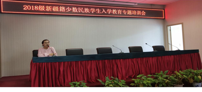 本次入学教育专题培训会也受到学工部相关领导的高度重视,学工部副部长王东爽出席会议并发表讲话,民族事务办公室负责人刘枫老师主持会议,少数民族专职辅导员美合日古丽、安凯尔、肉孜、阿卜杜老师,新疆内派老师周忠旺出席了本次会议。