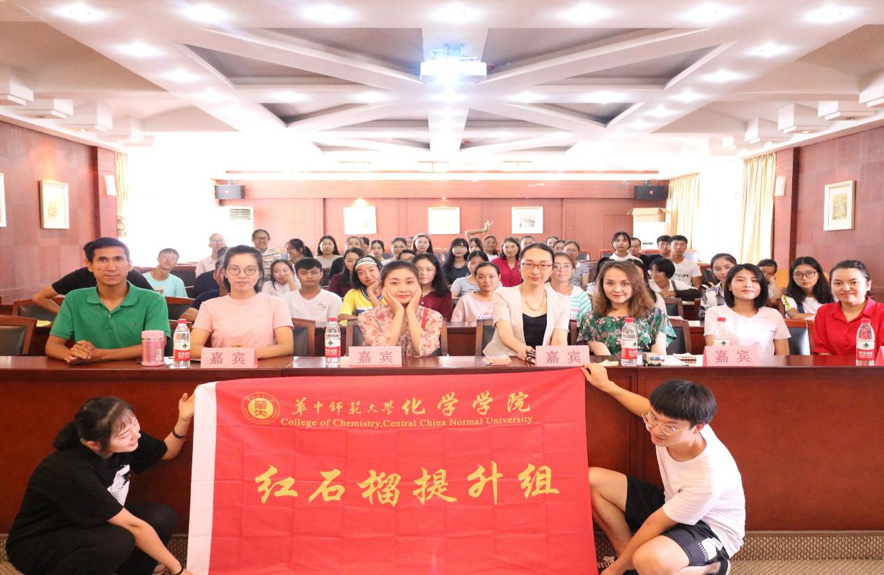 化学学院红石榴提升组 9月22日上午,华中师范大学化学学院2018级“团民族心,圆石榴梦”红石榴中秋交流会在逸夫化学楼五楼会议室举行。化学学院党委副书记徐芬、武汉科技大学少数民族专职辅导员玛依努尔、化学学院2016级辅导员聂敏、化学学院2018级辅导员肉孜、化学学院2017级兼职辅导员刘晓梅、化学学院2018级兼职辅导员李鑫出席了本次会议。化学学院红石榴项目部分成员及化学学院2018级民族新生参加会议。本次会议由化学学院红石榴项目负责人徐浬主持。