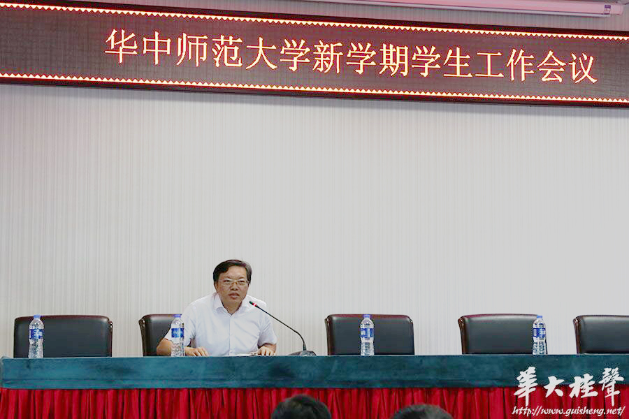 华大桂声讯 9月7日,华中师范大学新学期学生工作会议在大学生活动中心403报告厅举行。校党委书记黄晓玫、副书记覃红出席,学工部、研工部、就业处、保卫处、校团委等学工部门负责人以及各学院党委副书记和辅导员参加会议。