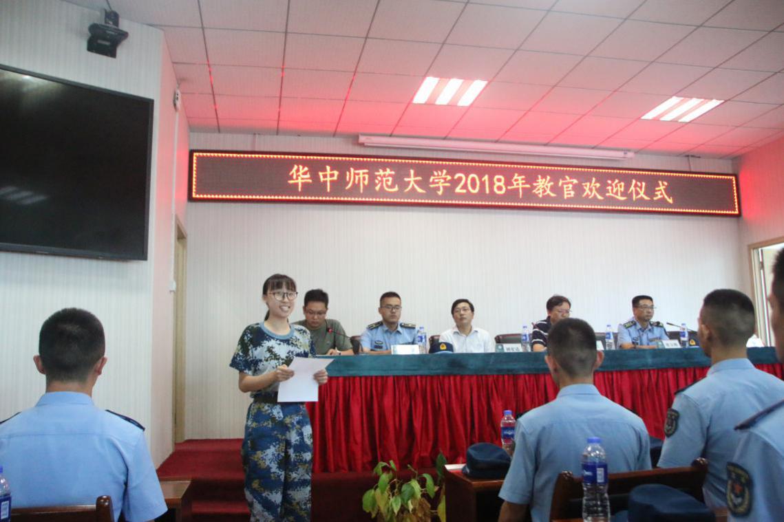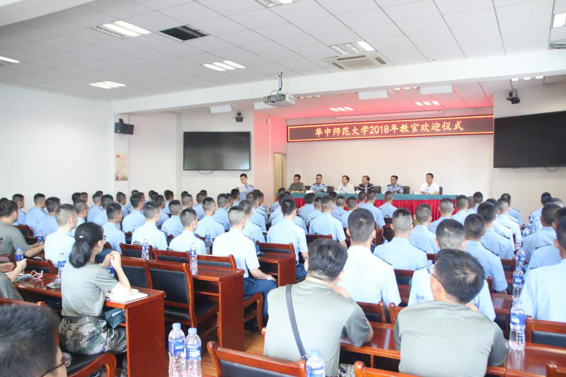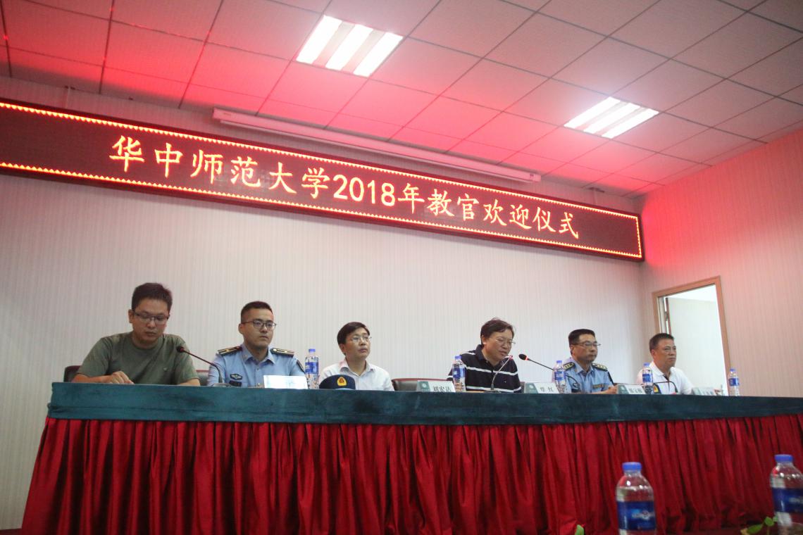 (通讯员 李祥栋)9月2日下午,华中师范大学2018年教官欢迎仪式在我校大学生活动中心403会议室举行。华中师范大学党委副书记覃红, 空军预警学院学员二大队大队长张宝根上校、二大队六队队长刘广焱少校,华中师范大学学生工作部(处)部长刘宏达、副部长王东爽出席会议。欢迎仪式由学工部副部长罗高峰主持。