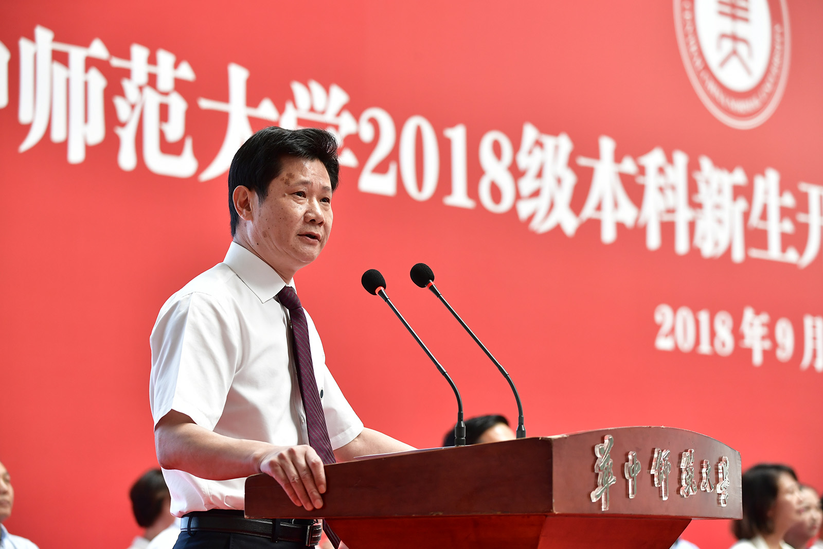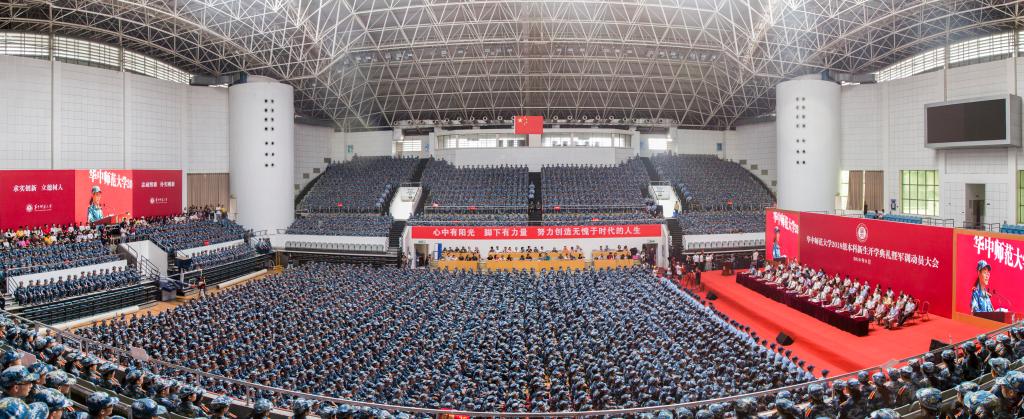 9月3日上午,华中师范大学2018级本科新生开学典礼暨军训动员大会在校佑铭体育馆顺利举行。校党委书记黄晓玫,党委副书记、校长赵凌云等校领导,空军预警学院全体承训官兵,我校各职能单位以及学院负责人出席典礼。2018级全体新生和部分教师代表参加。典礼由校党委副书记覃红主持。