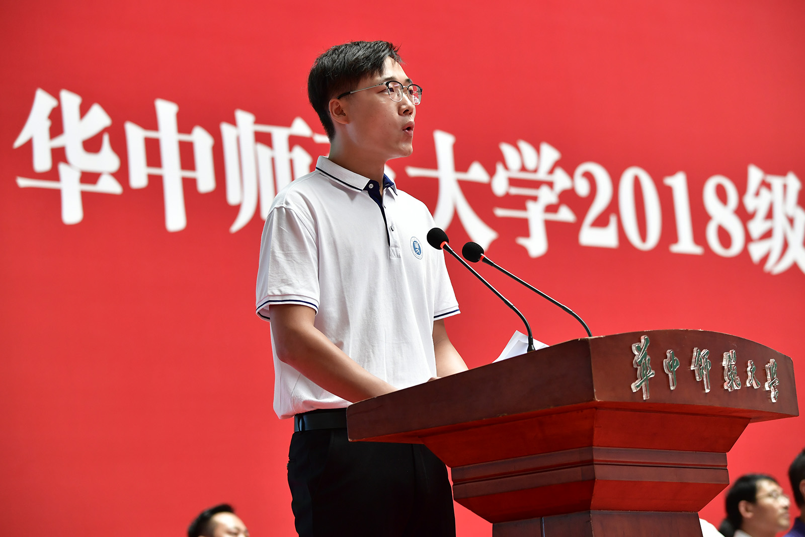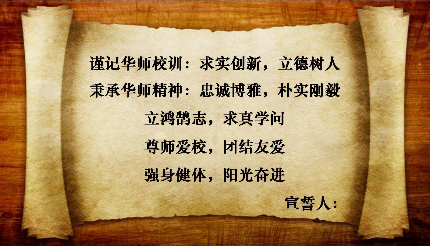 “谨记华师校训:求实创新,立德树人;秉承华师精神:忠诚博雅,朴实刚毅。立鸿鹄志,求真学问,尊师爱校,团结友爱,强身健体,阳光奋进。”4621名18级本科新生庄严宣誓,立志成为德才兼备的华师学子。最后,全体新生齐唱校歌,大屏幕上播放了新同学在大学伊始许下的美好愿望。