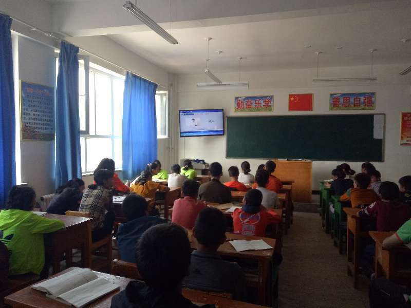 8月14日上午,木吉镇中学正进行着一堂与以往截然不同的课堂模式。教室上方的多媒体屏幕正播放着由华中师范大学“丝路·逐梦”支教团制作的微课堂视频。新颖生动地课堂方式吸引了同学们的注意力,同学们都认真地随着微课堂跟读学习。