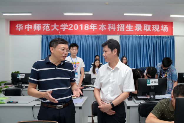 招办相关老师从招生人数、招生类型、生源质量、录取进度等方面向赵凌云、覃红汇报了我校2018年招生录取情况。赵凌云还与两位已经被录取的、来自四川和浙江的考生进行了现场连线,祝贺他们在高考中取得了优异成绩,感谢他们选择来到桂子山,成为一名华中师范大学的学子,并与他们就交换生项目、双学位辅修等问题进行了交流。赵凌云对两位学子努力向学的态度表示赞许。他说,学校制定了各种培养计划,致力于全方位拓展学生能力,为学生全面发展搭建各种平台,希望他们利用暑假好好休整,九月再相约桂子山。