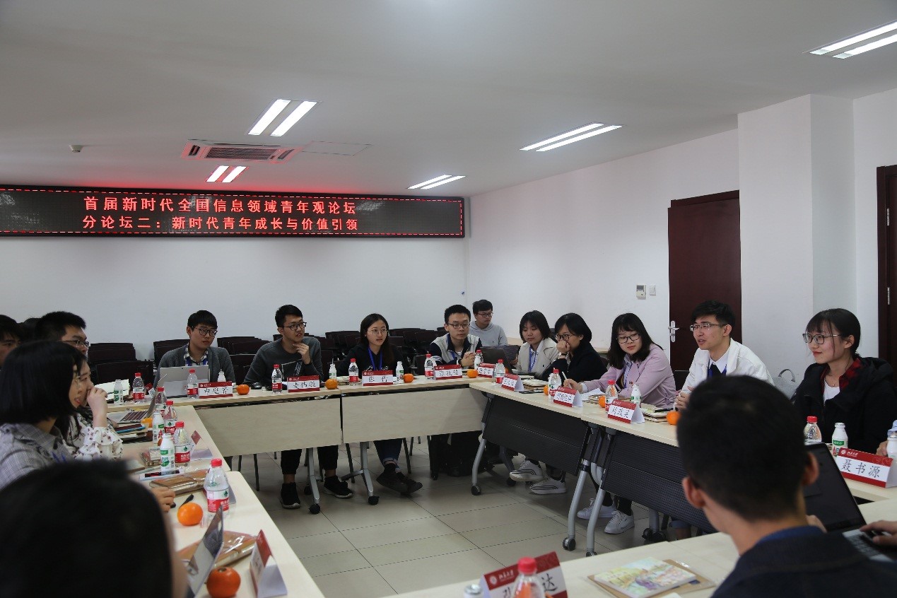 下午2点,分论坛在北京大学信息管理系召开。参会师生代表围绕新时代信息领域思想政治教育工作与青年发展,新时代青年成长与思想引领,图书情报与档案管理学科发展与人才培养的未来方向,参会师生代表进行了工作交流和研讨。信息管理学院团委书记蒋可鸣,学生骨干何杨煜琪分别作主题发言,介绍我校我院学生工作情况和经验。