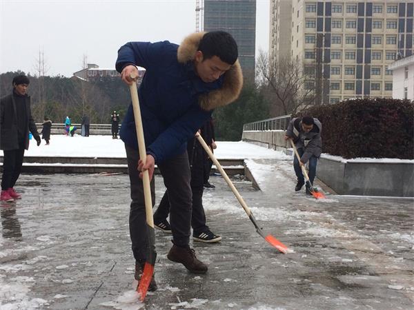 志愿者们分工明确,合作默契,用各种工具扫雪除冰,经过接近三个小时的铲雪、除雪工作,积雪及结冰区域的隐患基本清除。志愿者们在最寒冷的冬天,在最短的时间里,以最快的速度,消除了积雪给全校师生所带来的不便,有力保障了全校师生的出行安全和正常的学习生活,这不仅体现了政工干部与广大青年学生高尚的品格和无私的奉献精神,更展现了我校师生积极健康向上的思想政治风貌。(通讯员 甄诚 王倩倩)