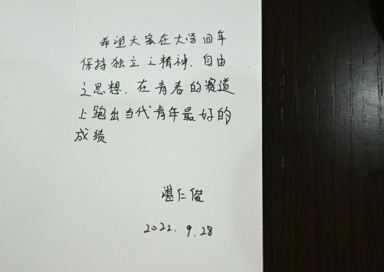 音乐学院的兰天文老师送给同学们四心:一颗好奇心,永葆热爱心,持续探索心,勇攀高峰心。”鼓励同学们保持热爱,奔赴山海,以梦为马,诗酒趁年华。