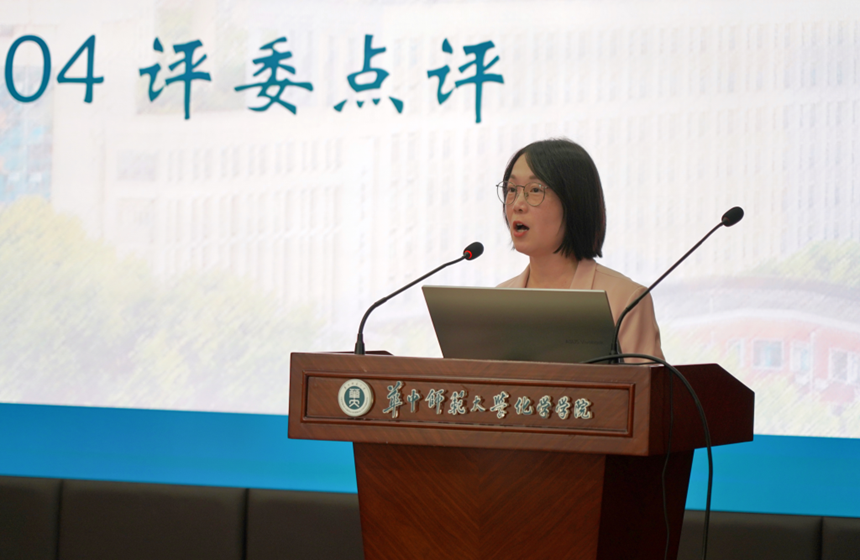城市与环境科学学院参赛选手谭平选择了一个中年教师和一个青年教师作为采访对象,从经验与教训两个方面进行访谈。答辩环节中,答辩评委李艳对她提问,希望她就因学科侧重、资历等原因缺少晋升机会时,青年教师应采取的对策做出回答。谭平认为“新老师就像新学生”,青年教师应明确自身定位,做好教学反思,积极向优秀前辈学习进而实现自我教师价值的实现。这种态度与做法得到李艳的肯定。