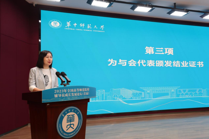 随后,华中师范大学党委学工部副部长、思政处处长李刁为与会代表颁发结业证书。