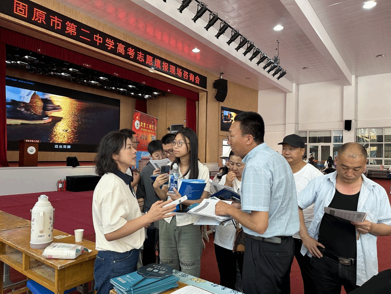 抵达宁夏后,工作组分为两组分别在银川一中、二中和固原一中、二中设立招生咨询点,进行招生答疑,与前来咨询的学生和家长进行了深入交流,耐心解答疑问,详细介绍了学校的发展脉络、专业特色、师资力量及就业情况。其中,针对最新发布的公费师范生本、研衔接政策进行细致讲解,消除考生及家长疑虑,赢得了当地学生及家长一致好评。