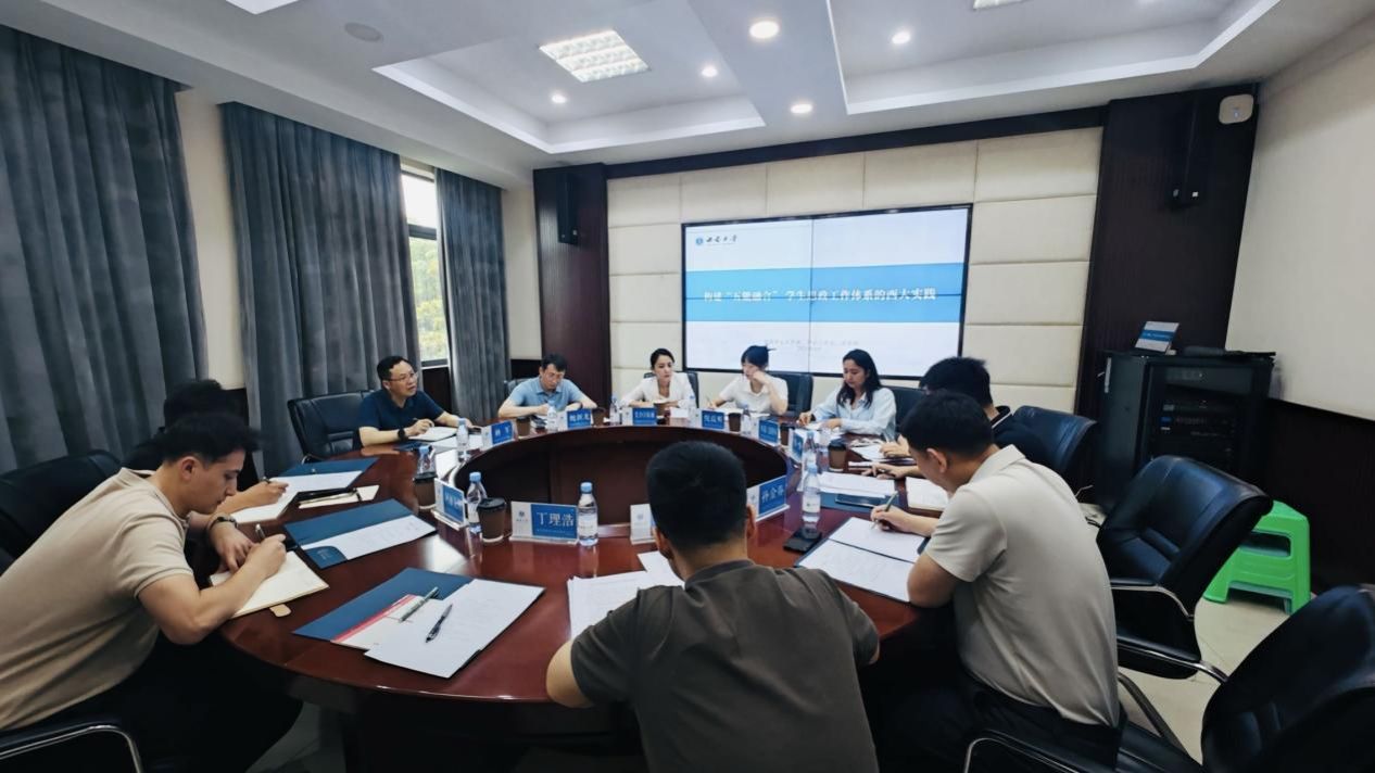 5 月 23 日,调研组前往重庆大学开展交流调研。在座谈交流会上,重庆大学党委学生工作部部长韦迎春从办学历史、学科优势及人才培养体系切入,系统介绍学校整体发展情况。在数字学工建设领域,重庆大学智慧学工平台建设在推进学生工作网络化、系统化、精细化方面成效显著,实现学生事务“一网通办”,运用人工智能技术建立学业预警、心理危机干预模型等。双方围绕民族团结进步教育、AI辅导员建设、发展型资助育人、创新创业教育等方面展开了深入交流。