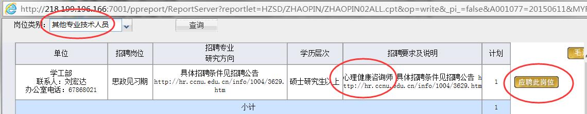 3.心理健康教育中心教师岗位招聘工作具体方案将于2018年3月下旬在学校网站(http://xgb.ccnu.edu.cn)的“通知公告”栏上公布。