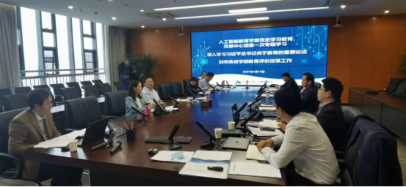 4月19日下午,人工智能教育学部党委中心组在南湖综合楼1182会议室举行2021年党史学习教育第一次专题学习,学习主题为“深入学习习近平总书记关于教育的重要论述 加快推进学部教育评价改革工作”。校党委常委、副校长、人工智能教育学部部长夏立新出席,中心组成员参加了学习。