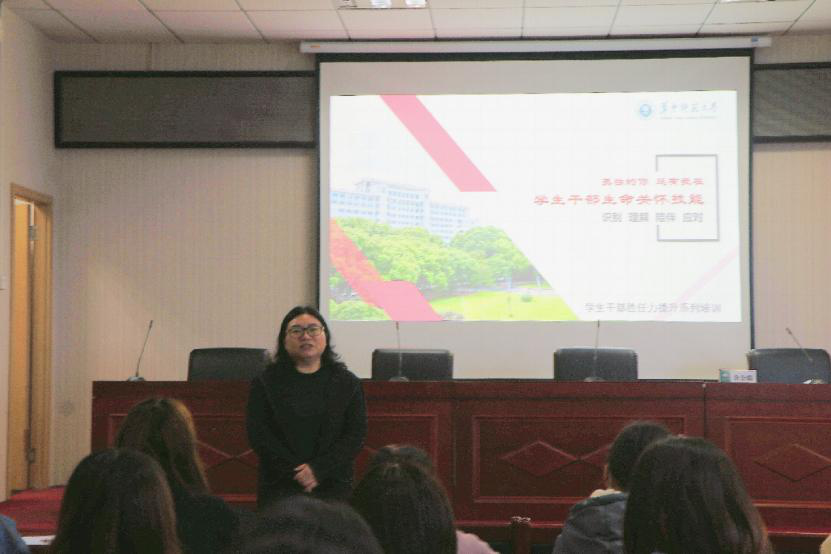 马克思主义学院讯为增强学生干部的生命关怀技能,进一步提升学院人才培养质量,我院于4月2日在大学生活动中心403报告厅举办以“孤独的你,还有我在”为主题的学生干部生命关怀技能培训。培训特邀全国高校心理委员研究协作组理事、中南财经政法大学心理中心专职教师余金聪主讲。学院党委副书记邵莉莉、研究生辅导员丁琳、唐慧颖老师以及学院本硕博心理委员和主要学生干部共同参加。活动由邵莉莉主持。