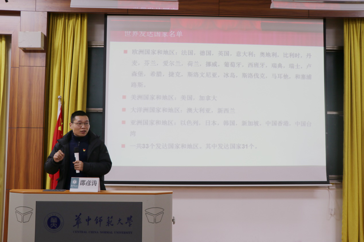 随后,邵彦涛副教授作题为《中国共产党与中国道路》的专题报告。邵彦涛从社会主义道路的1.0、2.0和3.0三个版本分析了中国共产党是如何带领中国人民开辟由落后国家向社会主义现代化国家目标迈进的新道路。并总结指出:落后国家实现现代化的形式,并非仅有西方国家的资本主义道路,各国可根据自身特殊性、结合实际走出一条新道路。