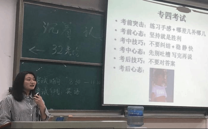 接着,张盛捷学姐以“从专四说开去”为主题进行了下一个活动内容。首先,她将专四考试过程分为:考前突击、考前心态、考中技巧、考中心态、考后技巧、考后心态。并且学姐强调,保持一个良好的心态在专四考试中举足轻重。分享完考试经验后,张盛捷学姐就她的大学学习和大学生活又做了进一步详细介绍,并给了学弟学妹们一些学习和生活的建议。学姐说,专四只是人生中的一小段旅程,大学已过半,我们应通过专四反思自己已经过去的大学两年时光,并对自己的下一阶段做好规划。学习不是大学生活的全部,我们应该找到自己感兴趣并且适合自己的爱好,不断尝试,敢于突破。但在充实丰富大学生活的同时,要努力夯实专业知识,这是一切规划的基础。