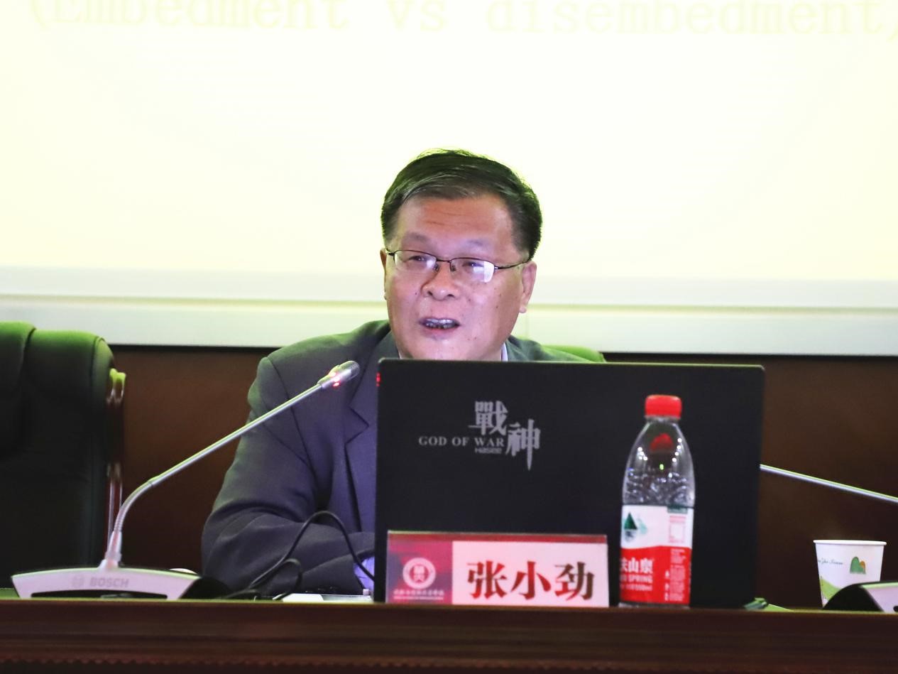 讲座分为四个部分。张小劲以G20峰会为引导,总结我国改革开放40年在社会资本与社会建制方面取得的成就,展开了本次讲座。第一部分为国际组织的类型。张小劲根据国际组织的宽泛界定和特定性质指出,国际组织是全球治理的体现、主体和平台,可按照国际法地位、活动区域和功能作用等划分其类型,并对国际组织的细类与数量、2018年国际组织活动主题统计、全球化进程和结构中的国际组织等内容作了阐释。