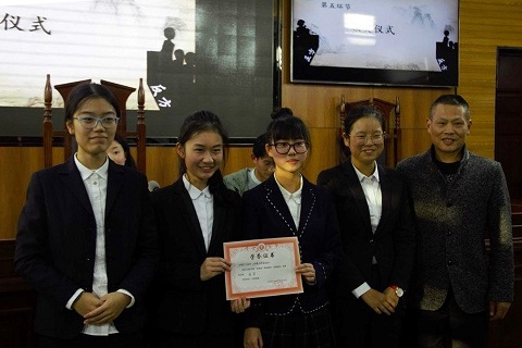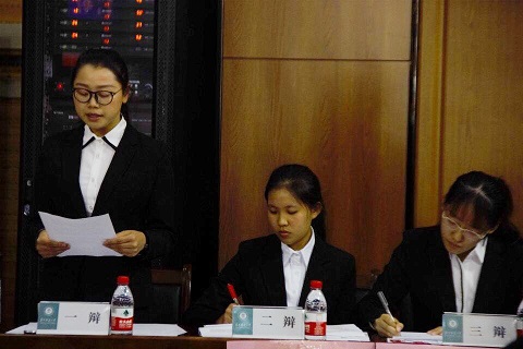 华大桂声讯 11月9日下午,法学院第七届律政杯辩论赛决赛暨闭幕式在8611模拟法庭顺利举行。出席本次辩论赛的有刘元璋老师、团委书记兼18级辅导员恽力达,校辩论队文学院优秀辩手黄雪纯、张唯,校辩论队法学院优秀辩手熊菲、肖肖。2017级朱沁雯担任主席。