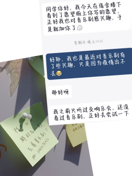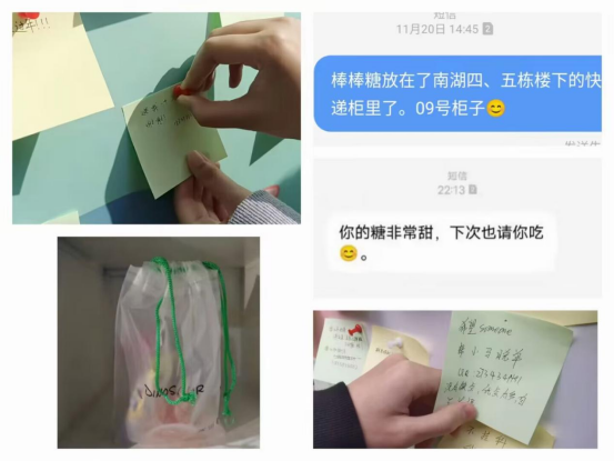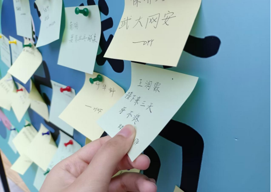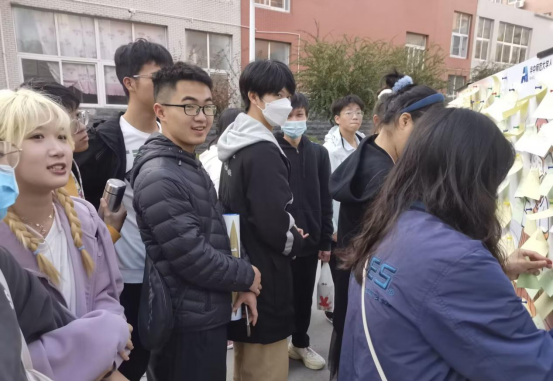 在记录完同学们的心愿便签之后,戴盈盈和刘焕玮交换了宿舍楼九栋和五栋展板的位置,将活动带入了第二阶段——“领愿”,让男生女生交换愿望,互相帮助实现。期间他们积极带动同学们领取他人的心愿并完成,吸引来了不少同学参加。在一次一次的“许愿——领愿”的过程中,同学们互相收获了喜悦与满足。