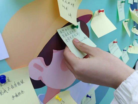 活动伊始,21级生活心理部负责人戴盈盈和刘焕玮分别在宿舍楼九栋、五栋摆放好许愿展板和领愿展板,整理桌椅,布置书写工具,准备了精美小礼品;随后,向同学们介绍了活动的内容与要求,简要介绍了本次活动的主题与目的,鼓励同学们写下自己的愿望。