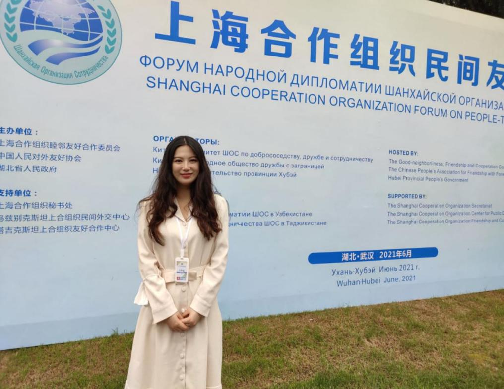 作为国家援外培训志愿者,她积极投身“一带一路”建设,连续7年参与国家各部委主办的“一带一路沿线国家农业种植研修班”“乌兹别克斯坦数字经济研修班”“下一代通信网络建设研修班”等12次研修班的日常管理和随行翻译工作,累计为国家大型主场外事外交活动提供超1500个小时的语言志愿服务,两次获得“中国优秀援外培训志愿者”称号和农业农村部表彰信;同时,组建华师俄语翻译团队,为在湖北省内举办的“第7届世界军人运动会”“上海合作组织民间友好论坛”“中国中部产能大会”等国际赛会志愿服务50余场。疫情期间,她加入抗疫文献翻译团队,以“译”抗“疫”,翻译总结我国的抗疫经验和成果,向世界展现中国智慧与中国方案,助力全球防疫事业。2021年6月,担任蒙古驻华大使的随行翻译,受到大使高度肯定,续写了中蒙“羊来茶往”的外交佳话。2023年9月,全程陪同白俄罗斯驻华大使访问湖北,获得中国网、湖北日报等多家主流媒体报道。2023年12月她翻译的系列纪录片《永远的行走:与中国相遇》俄语版在俄罗斯SPB TV播出,受到广泛的关注,向世界展现了可信、可爱、可敬的中国形象。2024年3月,作为湖北代表团成员赴俄罗斯参加世界青年联欢节,与来自世界180个国家的优秀青年深度交流,在国际舞台上讲好中国故事,传播好中国声音。