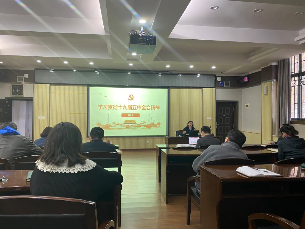 随后由党委学生工作部部长韩君华同志带领大家学习十九届五中全会精神。韩君华首先从十九届五中全会公报要点出发,回顾了“十三五”时期我国决胜全面建成小康社会取得的决定性成就。并结合社会现实,带领大家学习了我国“十四五”时期经济社会发展的主要目标和2035年我国基本实现社会主义现代化的远景目标。