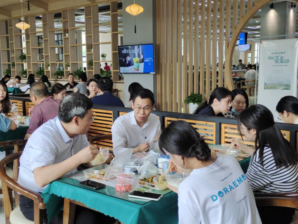 6月2日中午,公共管理学院“三进三联一做”系列活动之师生午餐会在南湖食堂二楼顺利举行,午餐会时值端午佳节来临之际,以倾听“生”音,粽“情”于你为主题。副校长李鸿飞受邀出席,学院教职工和2020级硕士研究生参加。午餐会由学院党委书记揭辉主持。