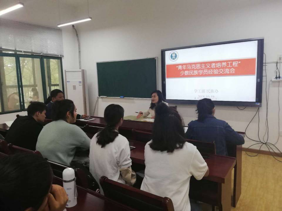 10月19日下午,“青年马克思主义者培养工程”少数民族学员分享会在大学生学习发展中心203教室顺利举行。本次经验分享会主要由青马工程学员排则莱提和艾米热古丽分享暑期学习实践经验,学工部民族事务办公室负责人刘枫老师主持,少数民族专职辅导员阿卜杜老师,新疆内派老师周忠旺出席了会议。