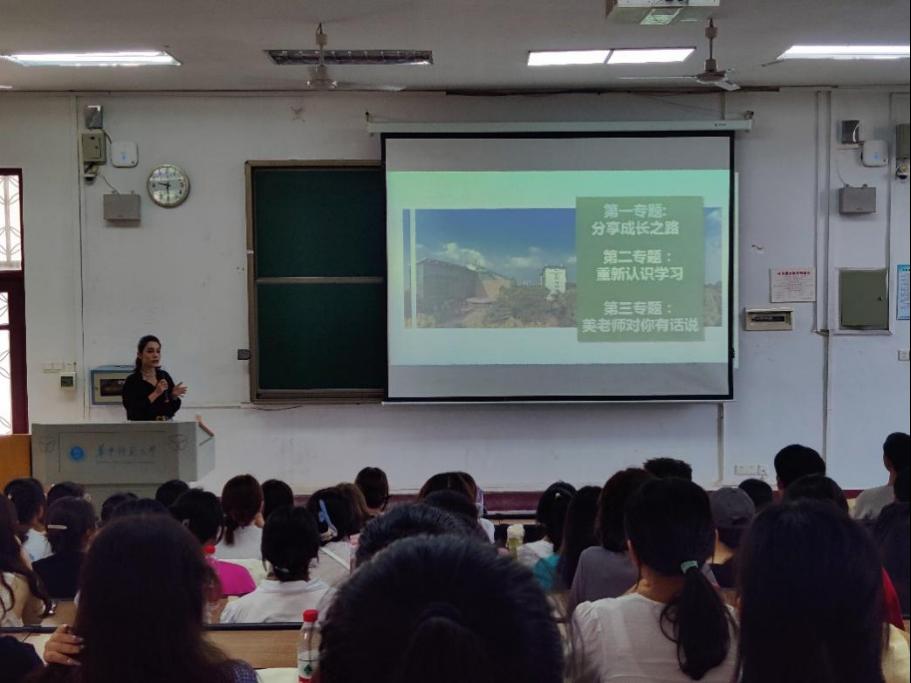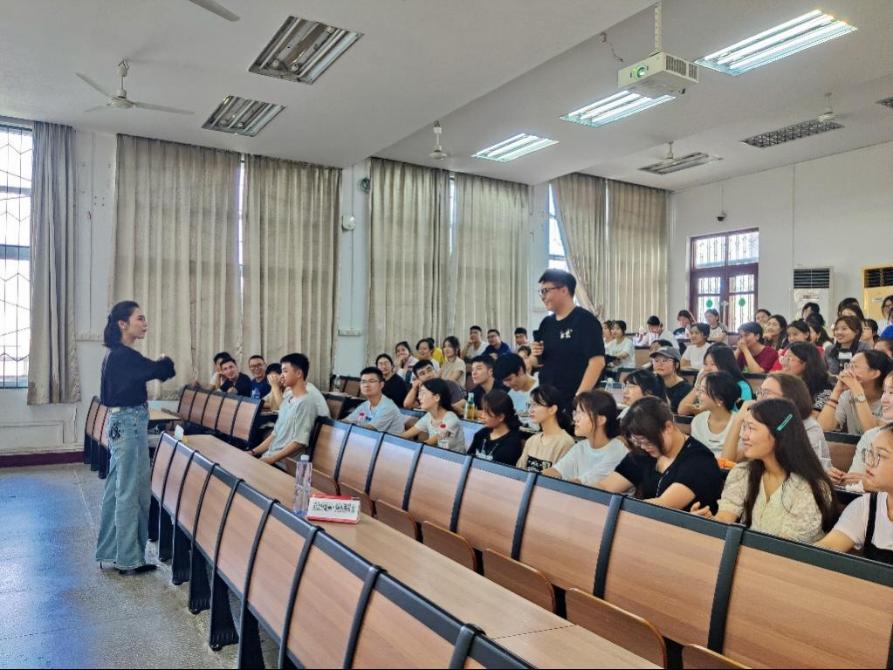 讲座伊始美老师抛出三个问题——我为什么选择这所学校?我期待在大学五年有什么收获?我愿意付出哪些努力?通过与新生互动进行自我介绍,引导新生正确认识大学学习。同时,讲述自己的求学、工作经历,为同学们梳理了大学学业与学生工作的相辅相成关系,激发了同学们对大学生活的向往与热情。