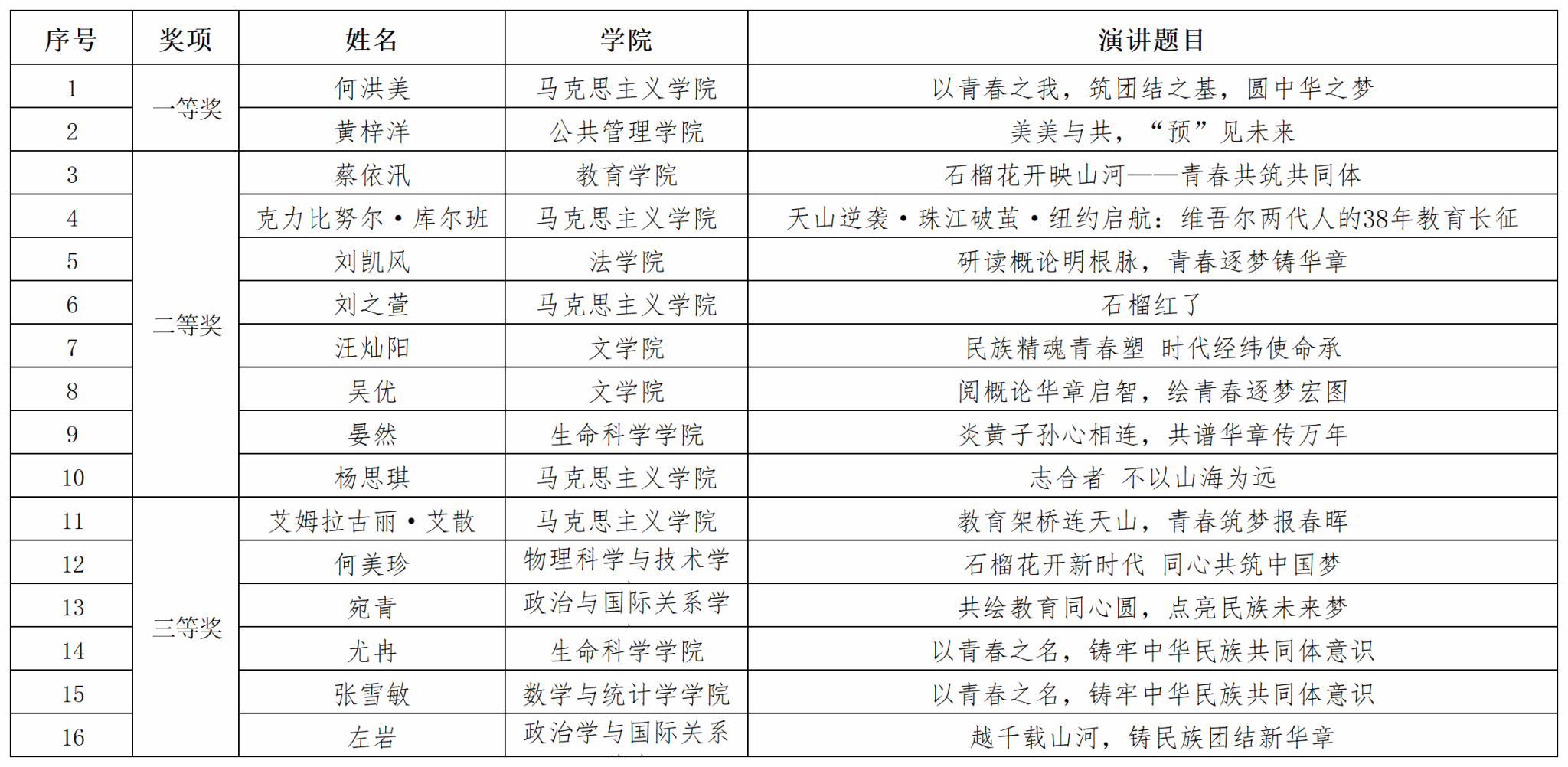 为进一步落实习近平总书记关于编好用好《中华民族共同体概论》等教材的重要指示,引导广大师生树立正确的民族观,讲好中华民族共同体故事,进一步夯实铸牢中华民族共同体意识思想基础。由党委学生工作部、校美美与共工作室主办“学好概论金教材,青春托举中国梦”大学生演讲比赛。