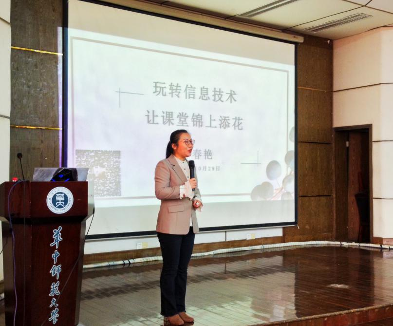 李春艳从自身丰富的教学工作实际出发,提出本次讲座的第二个问题:技术如何让课堂锦上添花?她从教师教学工具、课程结构、评价方式的变化几个方面分别介绍了信息时代对教师技能的提升提出的新要求,也结合自己的教育经历讲述二维码、弹幕互动等新兴工具为教学信息传递方式的改变带来的便捷。在分享过程中,李春艳向同学们推荐了“印象笔记”、“虫部落快搜”“EMU互动平台”等学习、教学工具。紧接着,根据同学们未来的就业选择,李春艳提到微课、翻转课堂、游戏化学习等方式可以切实提高教学质量,其中学习游戏化与学习化游戏是目前中小学教学发展的趋势。
