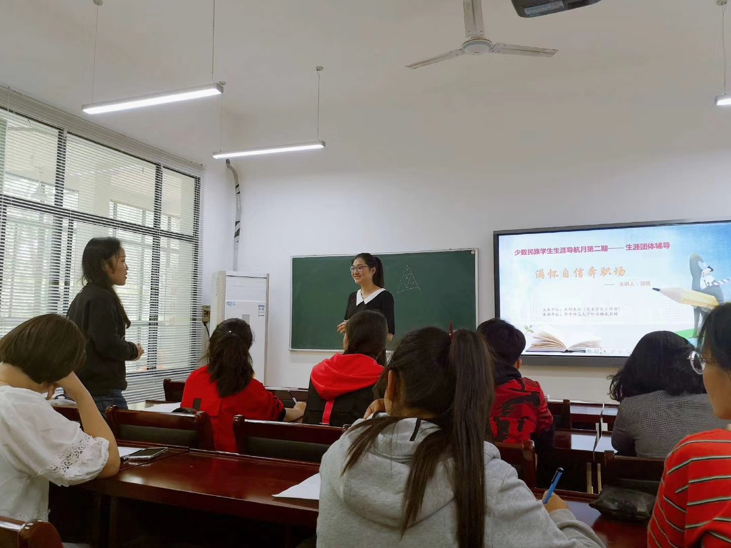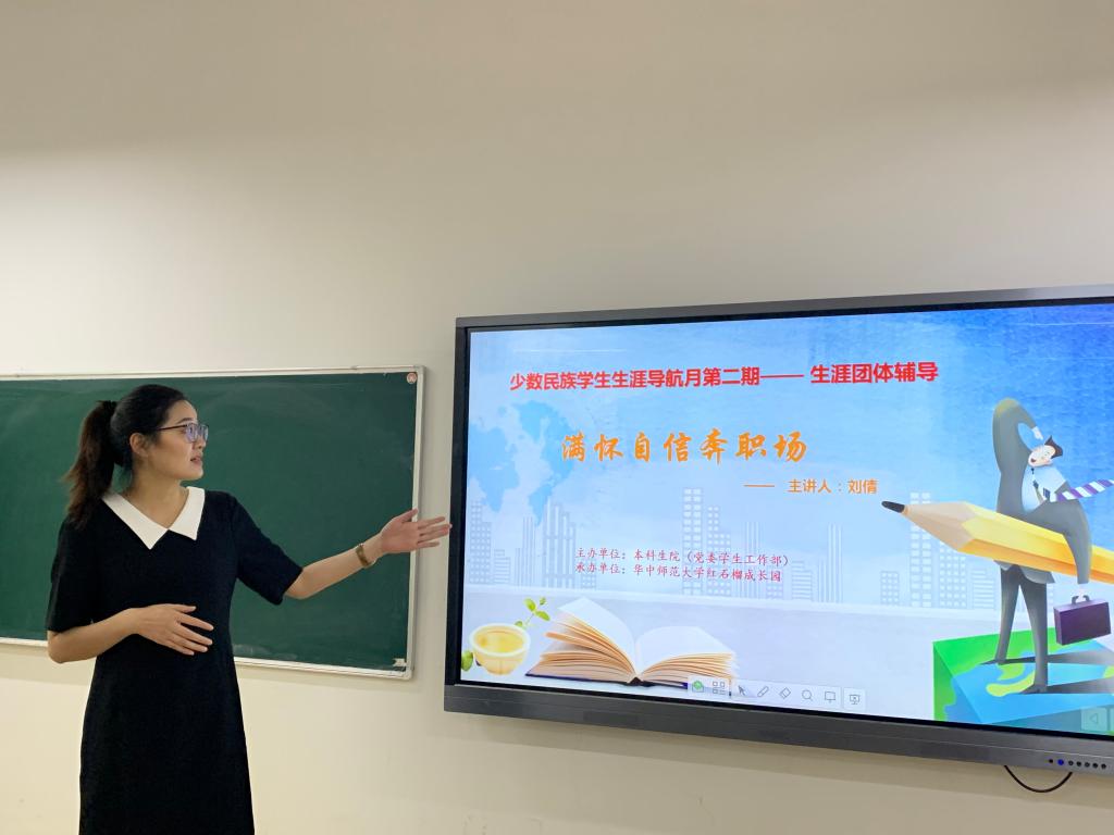 5月8日中午,由本科生院(学生工作部)主办、红石榴成长园民族社承办的少数民族学生生涯导航月第二期——生涯团体辅导,在大学生发展中心顺利举行。本次活动的主讲人来自物理学院辅导员刘倩,本期主题为“满怀自信奔职场”,来自不同年级不同专业的20名少数民族学生参加。
