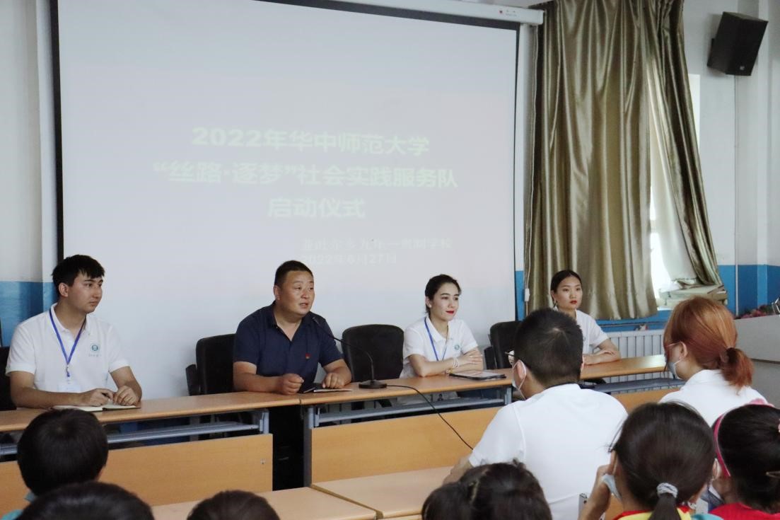 (通讯员:邱悦)为铸牢各民族师生中华民族共同体意识,加强民族团结进步教育,推广国家通用语言文字,6月27日,华中师范大学“丝路·逐梦”社会实践活动启动会在新疆拜城县亚吐尔乡九年一贯制学校报告厅举办,当地中学校长陈汉青及教师代表,华大“丝路·逐梦”社会实践队带队教师美合日姑丽、安凯尔及16名实践队员与当地122名学生共同参与了此次启动仪式。
