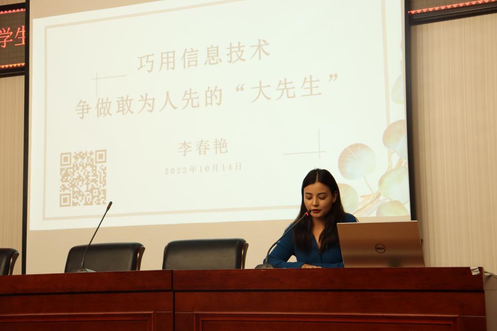 10月14日,华中师范大学“喜迎二十大,规划新蓝图”第四届少数民族学生生涯导航月第一场活动--“巧用信息技术,争做敢为人先的‘大先生’”讲座于大学生活动中心403教室顺利举行。本次讲座由新疆派驻教师李春艳主讲,旨在加强对师范生教学能力的培养和提高,重点提升学生的信息化技术手段运用及信息化教学能力。本次活动由党委学工部专职辅导员热米拉主持,校美美与共民族团结教育工作室成员及各学院、各民族学生参加。