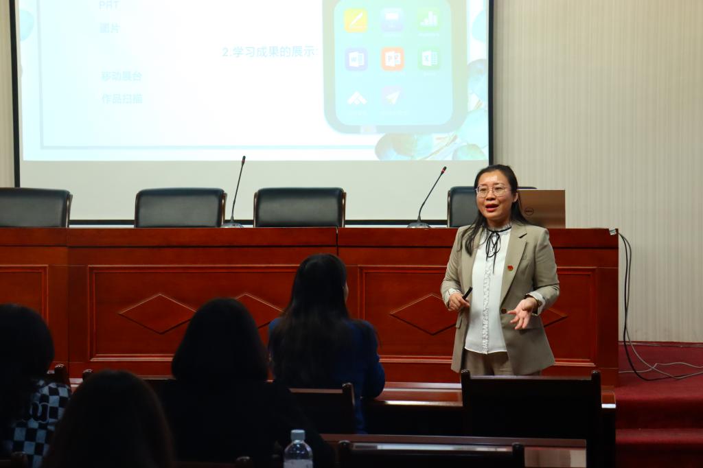 其后,李春艳结合自身经历,从教师教学、课堂学习、课堂活动与评价等方面向同学们推荐了“印象笔记”、“百度指数”、“课堂互动弹幕”等实用工具,鼓励同学们要善于使用信息技术优化教学过程,实现有效教学目标。