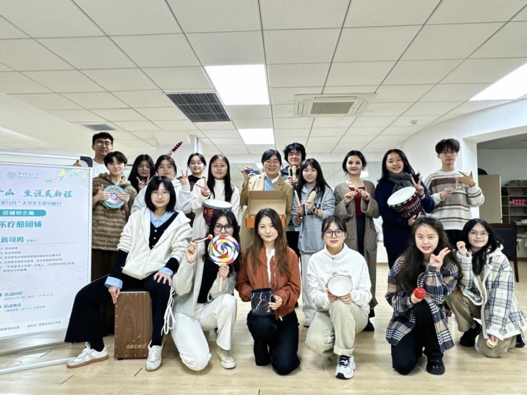 音愈心灵,辅启新章。安凯尔进行总结,他向蒋可鸣表达了诚挚的感谢,同时叮嘱同学们发现自己,悦纳自己,善于倾听自己的声音,选择热爱的方式应对不同情绪,迎接生活的每一天。本次活动在乐器大合奏中圆满结束,音乐疗愈,以其温馨的方式传递了关心和爱。无论是游戏互动,还是乐器奏鸣,都让大家在忙碌的生活中找到一片宁静的港湾。