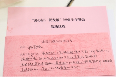 随后,每位老师和同学在“我写我心”环节写下了自己的心愿和寄语并分享给了大家,希望能通过这种简单而有温度的方式记录下在桂子山上的成长瞬间,助力同学们坚定的追逐教师梦。