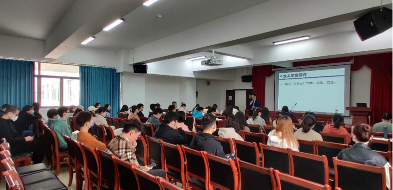 郎东鹏为大家介绍了“立人学堂”的由来。他认为,人一生的追求无外乎个体生命价值的最大化,而生命价值体现在对于他人的意义上,这就是“立人”。在生涯发展及就业、择业过程中,不断探索自我、发现自我,寻找自身的意义与价值,这就与“立人”的概念不谋而合。