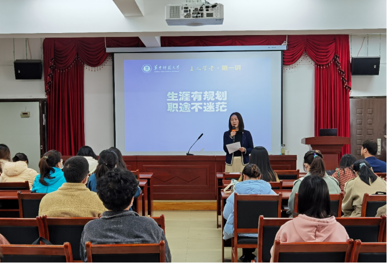 3月27日下午,华中师范大学立人学堂首场讲座——“生涯有规划,职途不迷茫”分享会在华中师范大学9号教学楼新闻传播学院842学术报告厅如期举办。讲座邀请到华中师范大学党委学生工作部副处长、生涯教育与就业创业指导专家郎东鹏教授担任主讲嘉宾,来自新闻传播学院、信息管理学院、音乐学院等多个学院的研究生共同聆听了本次讲座。讲座由新闻传播学院研究生辅导员李鸿主持。