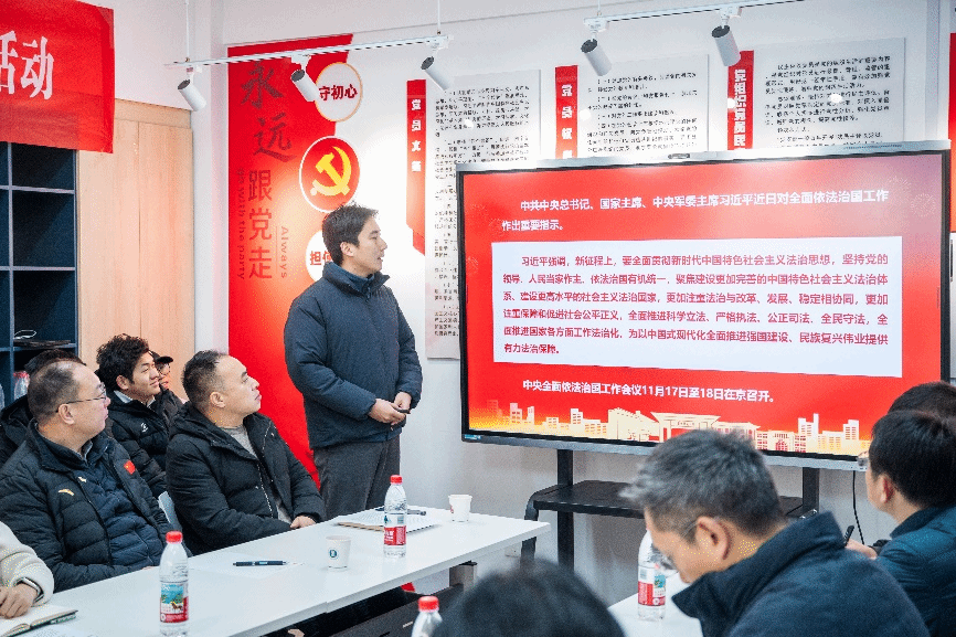 体育学院本科生党支部张俊仓领学习近平法治思想。他讲解了习近平总书记重要指示精神,梳理了全面依法治国进程。他表示,要强化法治意识,夯实法治素养,发挥先锋模范作用,为建设更高水平的法治中国汇聚力量。