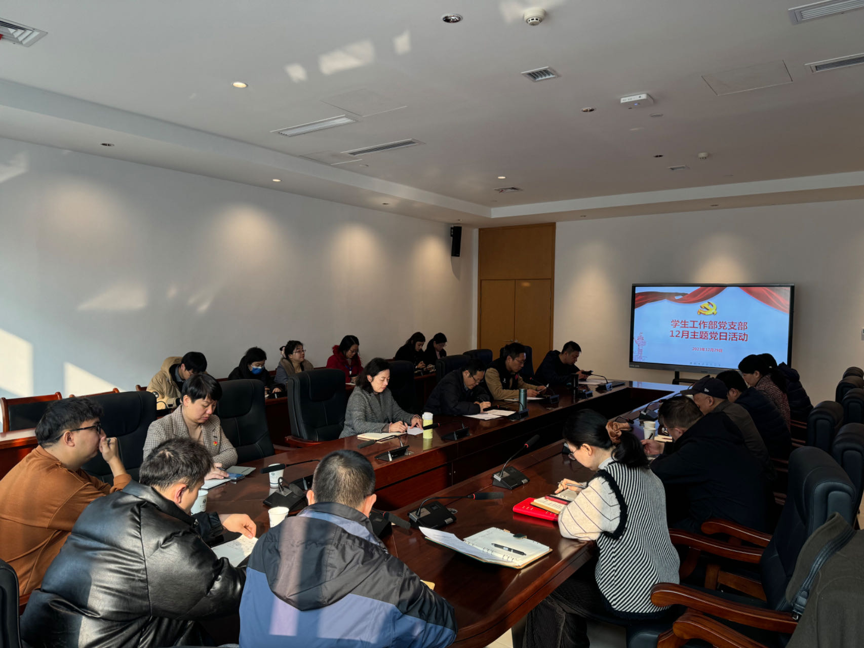 12月29日上午,学生工作部党支部在新大学生活动中心203会议室开展十二月主题党日活动。支部全体党员参加本次活动,活动由支部副书记饶艳萍主持。