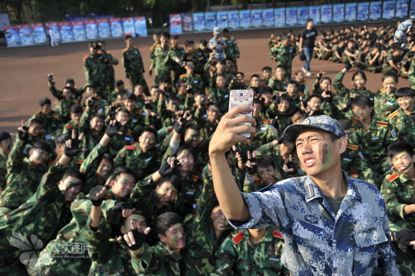 汇报表演中的小插曲 汇报表演前教官和新生们在为表演做最后的准备