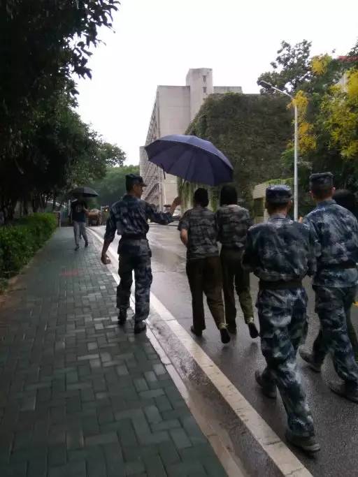 我的军训也曾是这般,只是2016 年的九月二号,是一个艳阳天,我们在阳光底下训练,太阳毒辣辣地烘烤着我们,汗水顺着脖子流下来,跟这几天下得雨倒是十分相似。