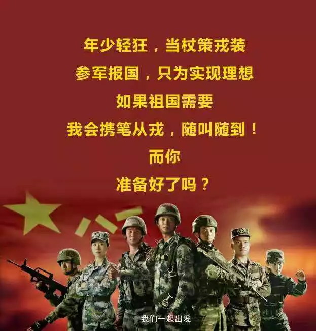 参军报国,献身国防,人生更显精彩,青春更添华光!