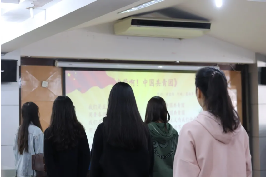 “I volunteer to join in the Communist Youth League of China, firmly support the leadership of the Communist Party of China, abide by the Constitution of the League, implement the resolutions of the League, fulfill the obligations of the League members, strictly observe the discipline of the League, study hard, work actively, work hard first, enjoy life last and strive for the cause of communism.” They were speaking out their true thoughts by reading the Vow, and showing their determination by clenching their fists. The Vow isn’t just a slogan. Hope the new members can study hard, forge ahead and work practically and to be a responsible league member.