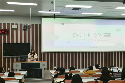 She offered suggestions as well as useful methods for every procedure of the job applications. Initially, she exposed that the employment information could be acquired from these recruiting websites such as BOSS, if the employment intentions have been certain. When you are writing your resumes, pay attention to the construction. For instance, some parts of your introduction ought to be highlighted while some need to be brief. Apart from that, the key points need to be in bold, but repetition needs be avoided. Moreover, she said, in the final interviews, we ought to maintain positive attitude and eliminate students’ thinking pattern, which tends to be rather simple, and seize the initiative. In addition, according to her own experience, she shared how she remove her foul mood. For example, she would record and review the job-hunting process to keep optimistic and have a conversation with others. Eventually, she conveyed her anticipation and wishes towards the junior students.
