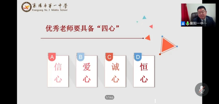 Furthermore, Zhong Daojie conveyed his great requirements as well as anticipation of teachers, and demonstrated his idea of four characters that teachers ought to possess, which are aspirations and conviction, noble virtue, sufficient knowledge and love for everyone. Teachers are far more than carriers of spreading knowledge, but the source of values. Though their capacity is important, what attaches its extreme significance is the values of tutors. Their profound learning is able to gain respect from students and colleagues as well as relief of the students’ parents. Moreover, love is the basis of education and the motivation of cultivation.