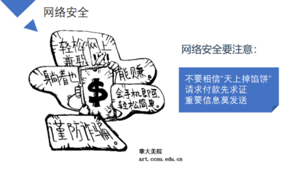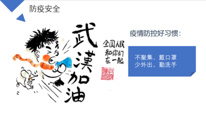 After the warm-bringing activity, to attend the roll call, Mr. Peng arrived at the conference hall at the first floor of School of Fine Arts. He emphasized some of the inescapable common sense about safety through a series of original paintings made by students from the school. He said we should not be careless during the epidemic, we ought to stay isolated, remember to wear masks, avoid going outside and always wash our hands. After we leave the university, we must be careful with the secure of the possession as well as ourselves, parents should be informed if we plan to go outside, the needed medicine ought to be possessed, keep an eye with the electronic secure, pay attention when we surf, don’t believe or spread rumors and discuss in good manner online.